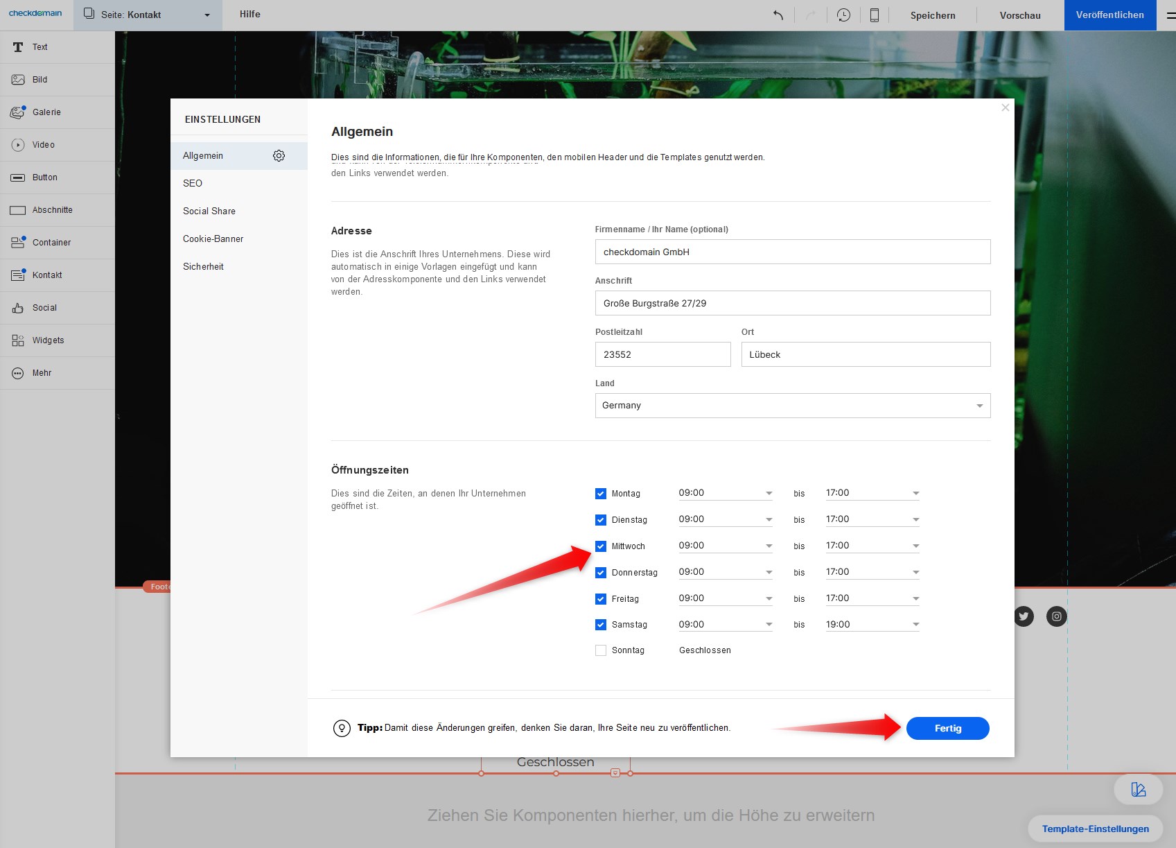 - Geschafft! Sie haben Ihre Öffnungszeiten zur Website hinzugefügt.