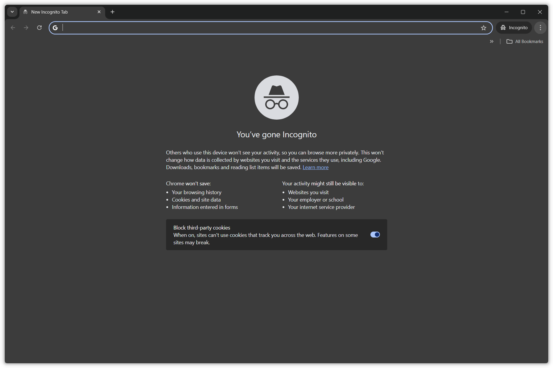 In den meisten Browsern finden Sie die Option für ein privates Fenster, indem Sie auf das Menü in der oberen rechten Ecke klicken. Sie können auch die Tastenkombination Strg + Shift + N (Windows) oder ⌘ + Shift + A (Mac) verwenden. Eine andere Option besteht darin, zwei separate Browser wie Chrome und Edge oder Safari und Firefox zu verwenden. In der Abbildung unten haben wir ein Inkognito-Fenster in Chrome unter Windows geöffnet.