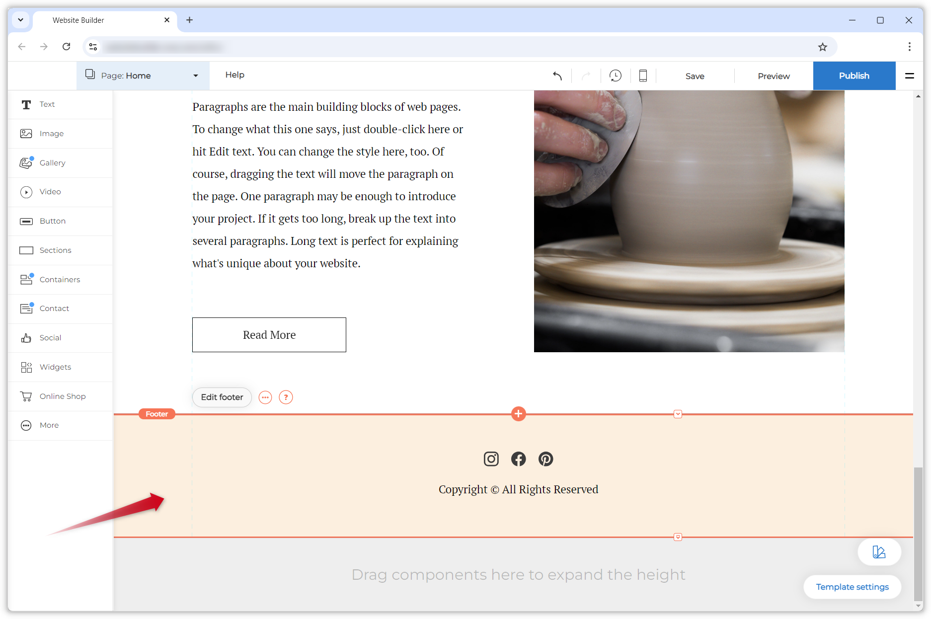 Tipp: Sie können alle Komponenten auf einmal kopieren, indem Sie auf den Header/Footer oder einen Abschnitt klicken und die Tastenkombination Strg + A (Windows) / ⌘ + A (Mac) verwenden.