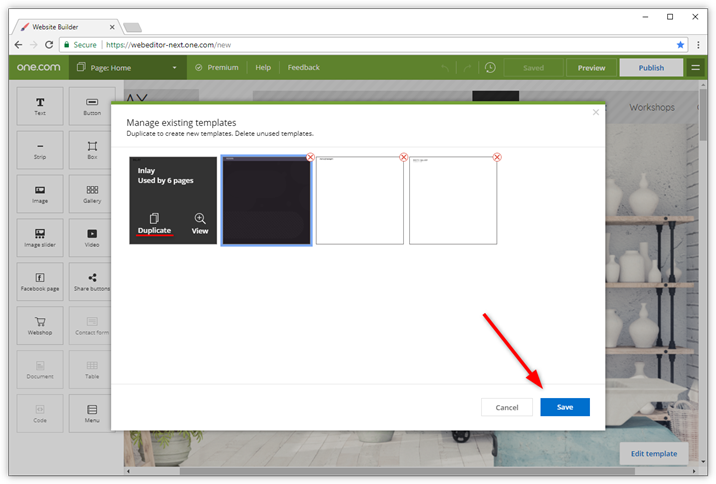 Hier können Sie Ihre bisherigen Templates sehen. Sie können auch ein Duplikat erstellen. Dies kann praktisch sein, wenn Sie ein Template erstellen möchten, das sich nur etwas von Ihrem aktuellen unterscheiden soll.