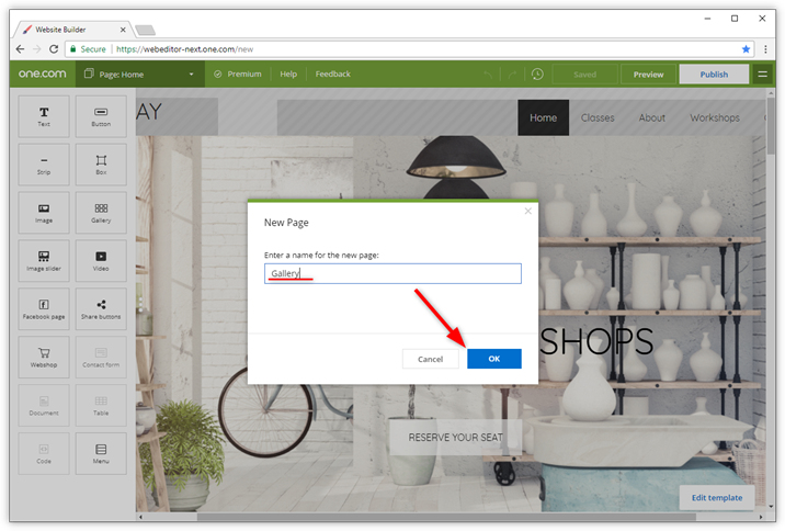 Geben Sie einen Namen für Ihre Seite ein und klicken Sie auf OK, um zu speichern. Der Name wird in Ihrem Menü sichtbar.