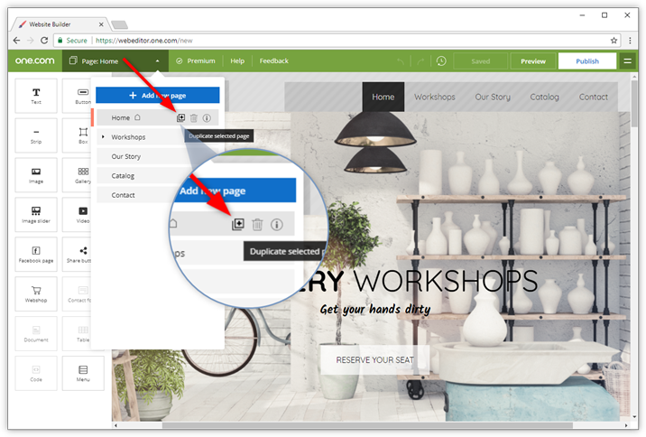 - Wählen Sie im Seitenmenü die Seite aus, die Sie duplizieren möchten.