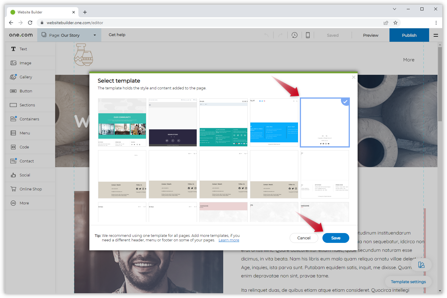 In dieser Anleitung erfahren Sie, wie Sie a) ein zusätzliches Template zu Ihrer Websitebuilder-Seite hinzufügen können und b) eine bestehende Seite auf dieses neue Template umstellen können.
