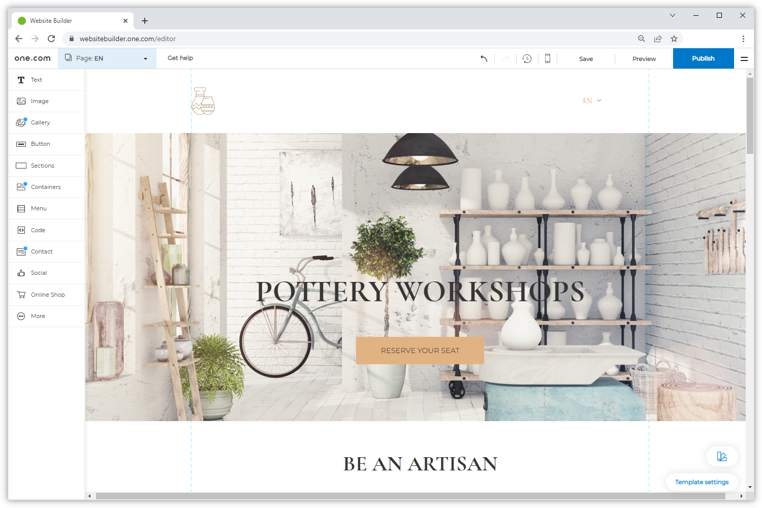 - Melden Sie sich im oneHome an und öffnen Sie den Websitebuilder.