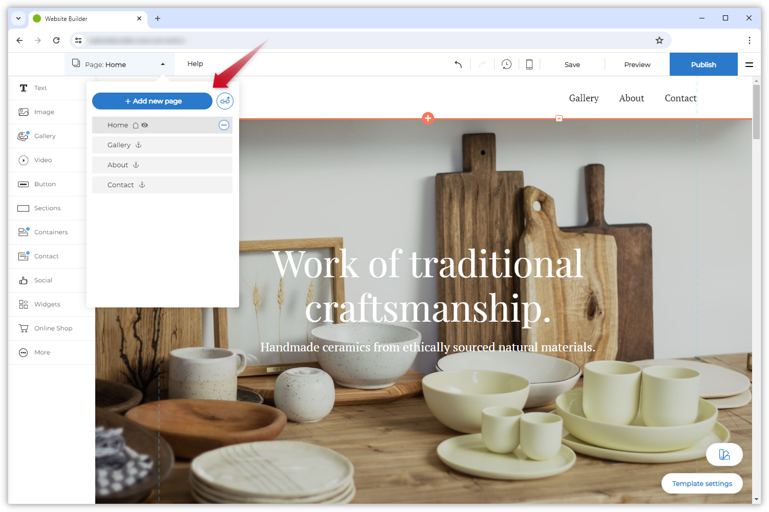 Öffnen Sie im Websitebuilder das Seitenmenü in der blauen Leiste am oberen Bildschirmrand.