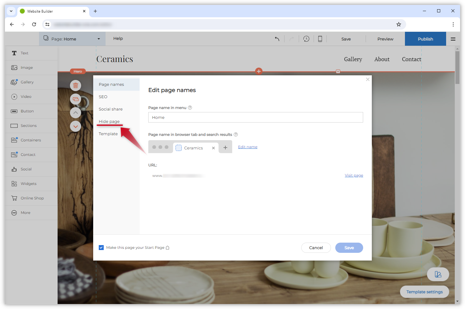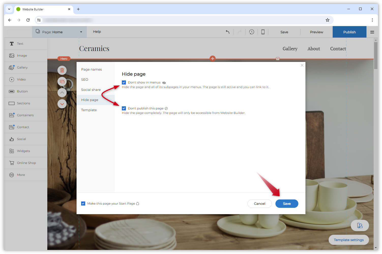 Es gibt zwei Möglichkeiten, eine Seite im Websitebuilder zu verstecken:
